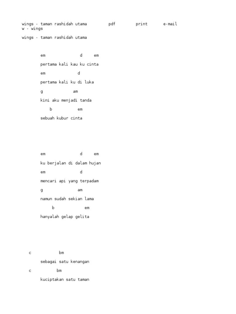 Lirik lagu wings taman rashidah utama dan chord kunci gitar taman rashidah utama dengan nada dasar em chord lagu malasyia. Rated 4/5 by 1 users.